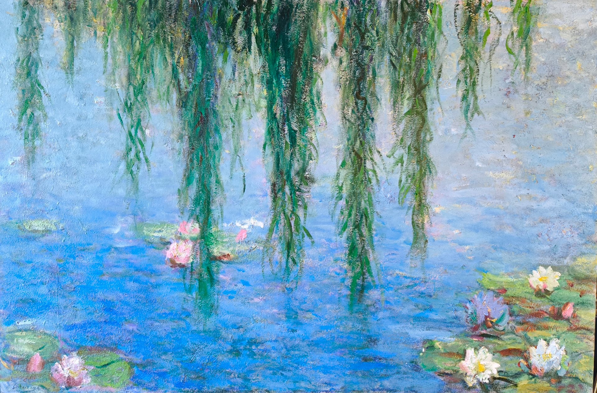 A large water lily painting of a bank in the Netherlands, near The Hague, painted in 2021. This is an exclusive work that is recognizable in the artist's painting style, everything flows into one into a harmony, a symphony of color and beauty.