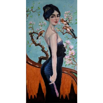 This painting is large and painted on thick, sturdy canvas. The blue-green creates a contemplative atmosphere of silence and beauty.