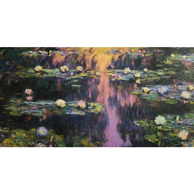 Une peinture de nénuphars où le ciel du crépuscule du soir se reflète dans l'eau du rose, violet au violet, les nuances de couleur fusionnent en une harmonie de beauté et de tranquillité. Une peinture unique dont il n'y a pas de deuxième.